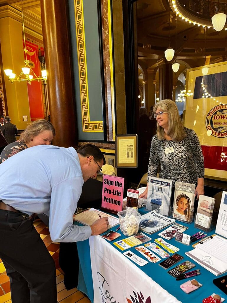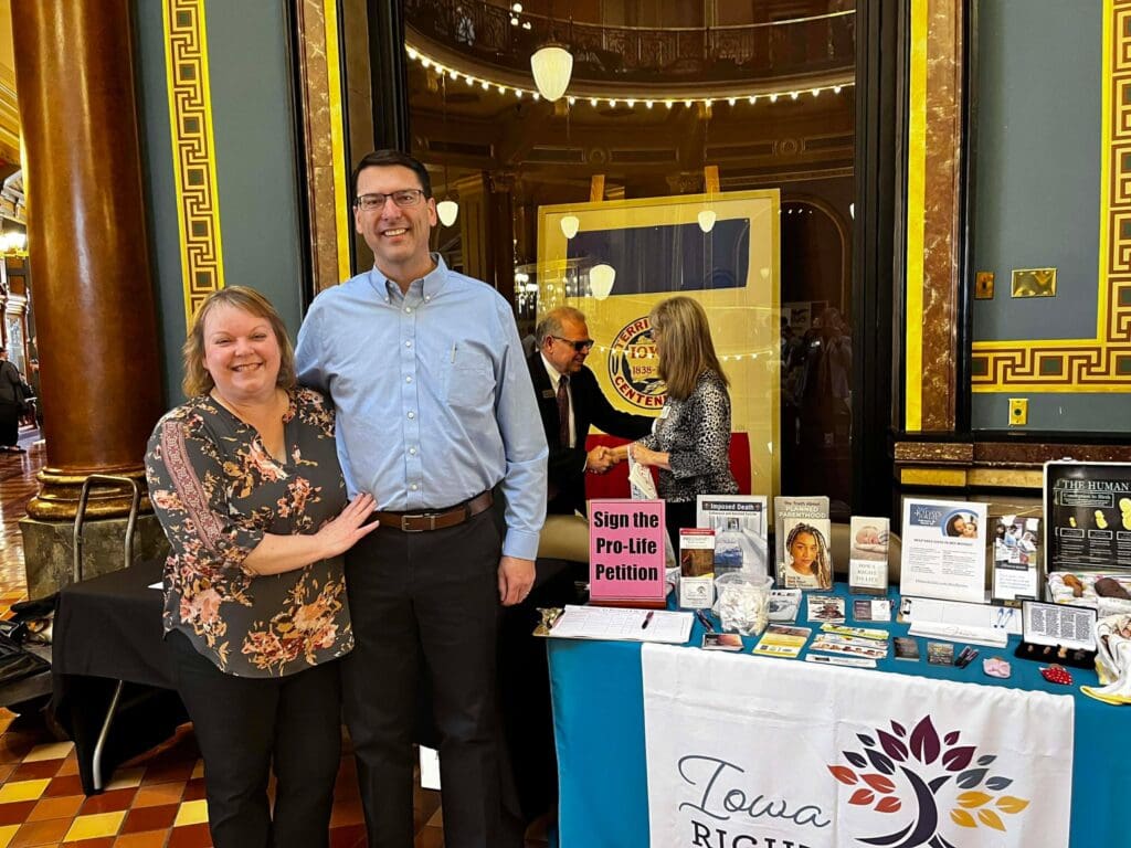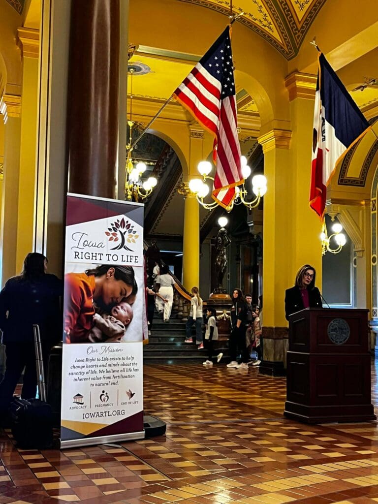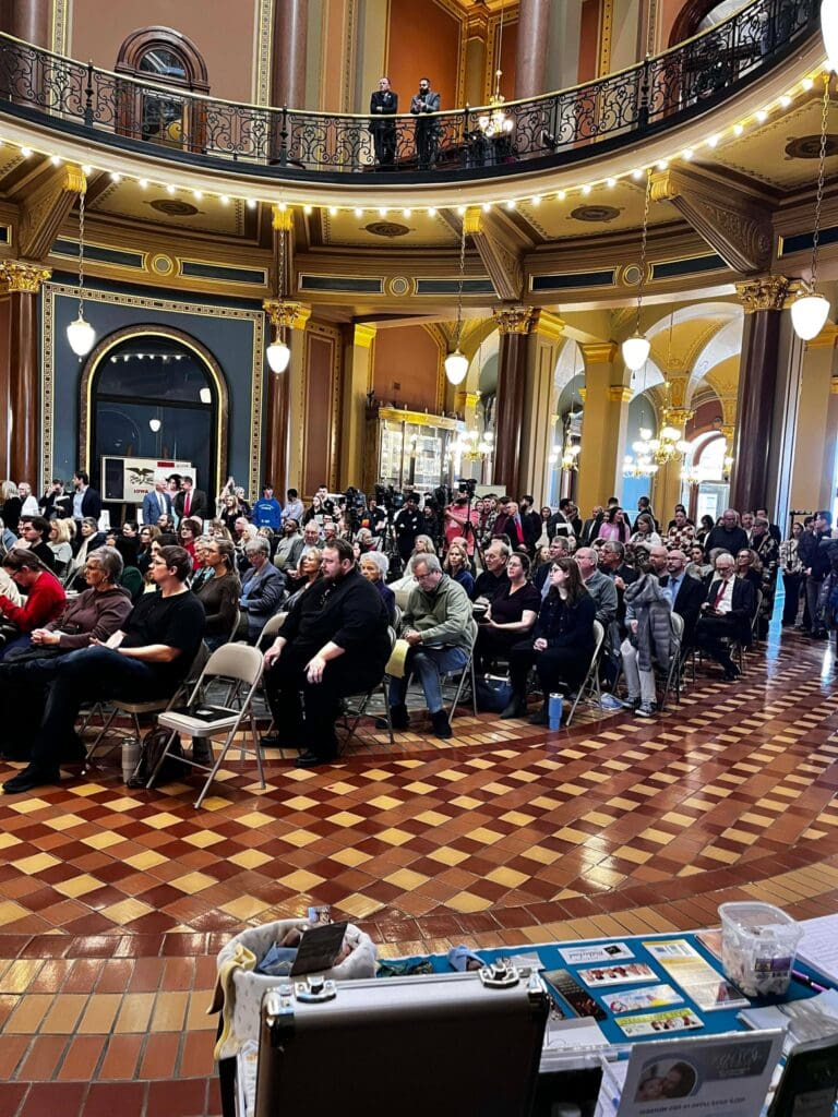 February 5, 2026: Iowa Right to Life values the opportunity to connect with pro-life Iowans, and we are encouraged each year by the great attendance at the annual Prayer Rally for Life at the Iowa State Capitol. We are always grateful to see many familiar faces and to meet new pro-life friends. The program included prayer, legislative updates, and personal testimonies. We are thankful for the importance Governor Kim Reynolds has placed on attending this event each year, and the amazing pro-life champion she has been. The most powerful testimony came from Briana, who courageously shared the trauma she experienced from the abortion pill, the deceptive ultrasound Planned Parenthood showed her to sway her decision, and the healing she later found through her relationship with Christ. Many Pregnancy Centers from around Iowa were present with their resource materials proving the pro-life community supports and cares for women and their unborn baby before, and well after, birth. For a map of pregnancy centers in Iowa and the services they provide, visit our website: www.iowapregnancysupport.com