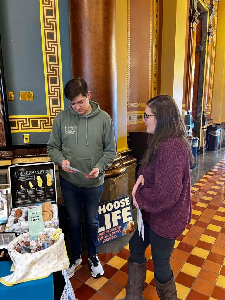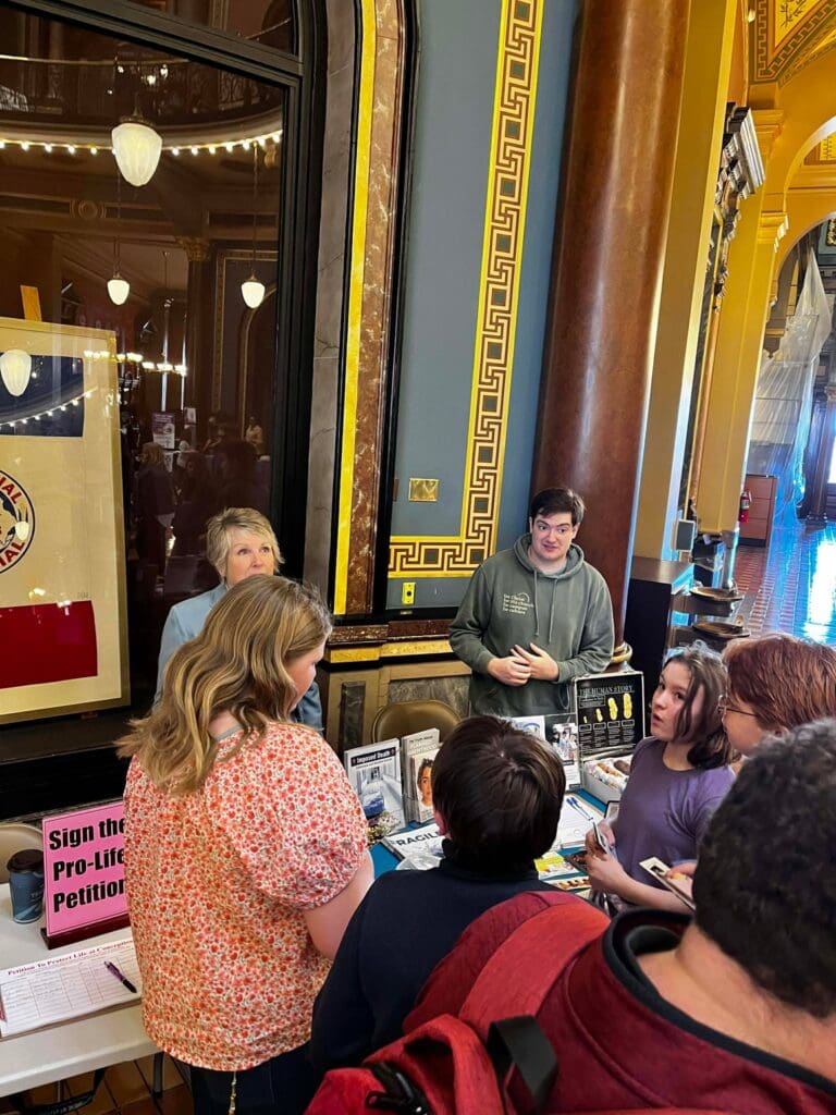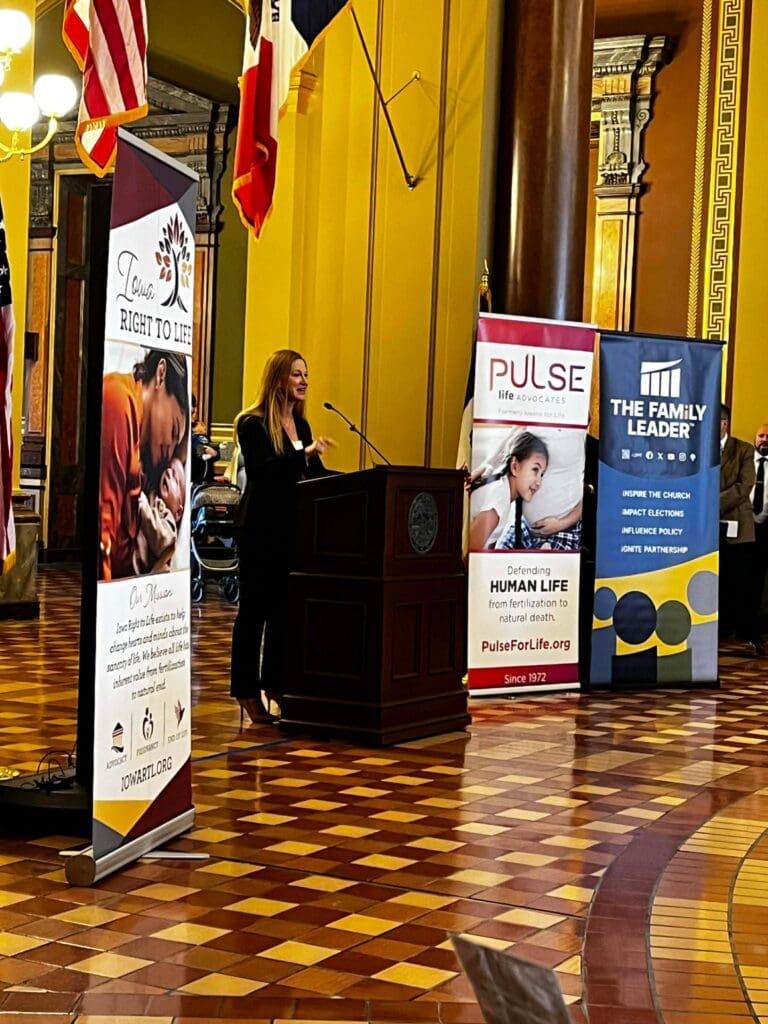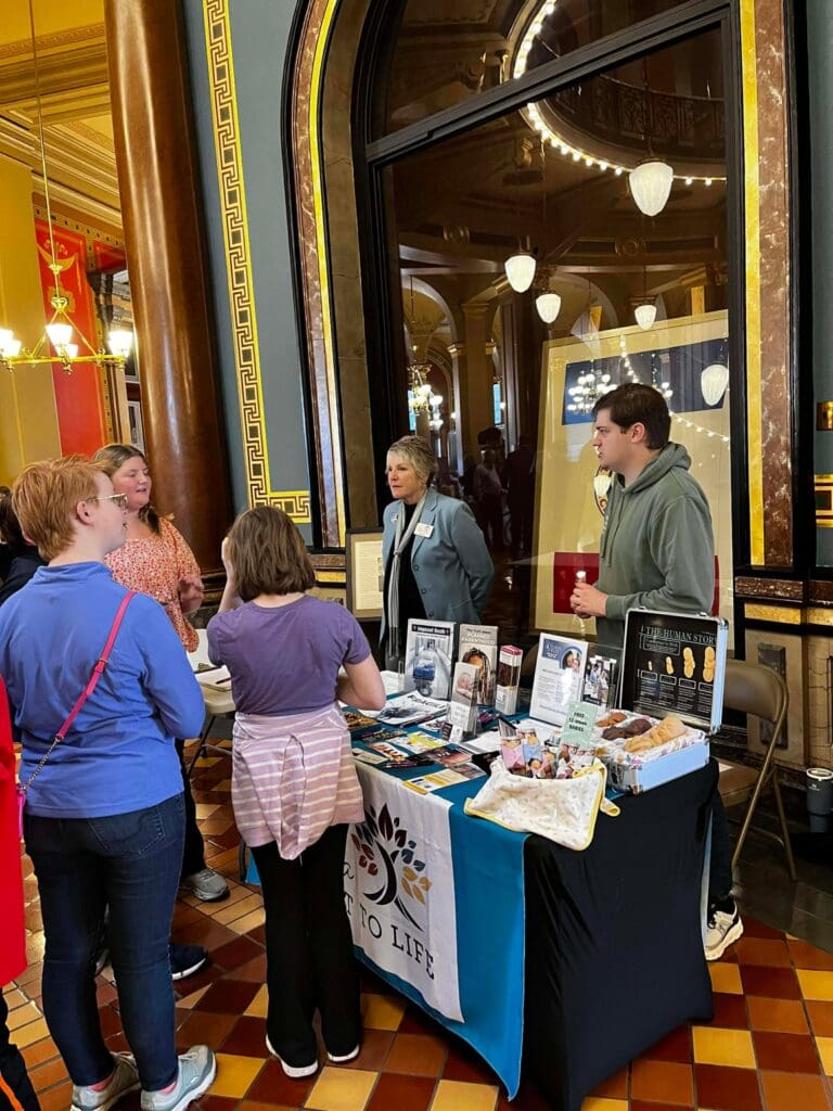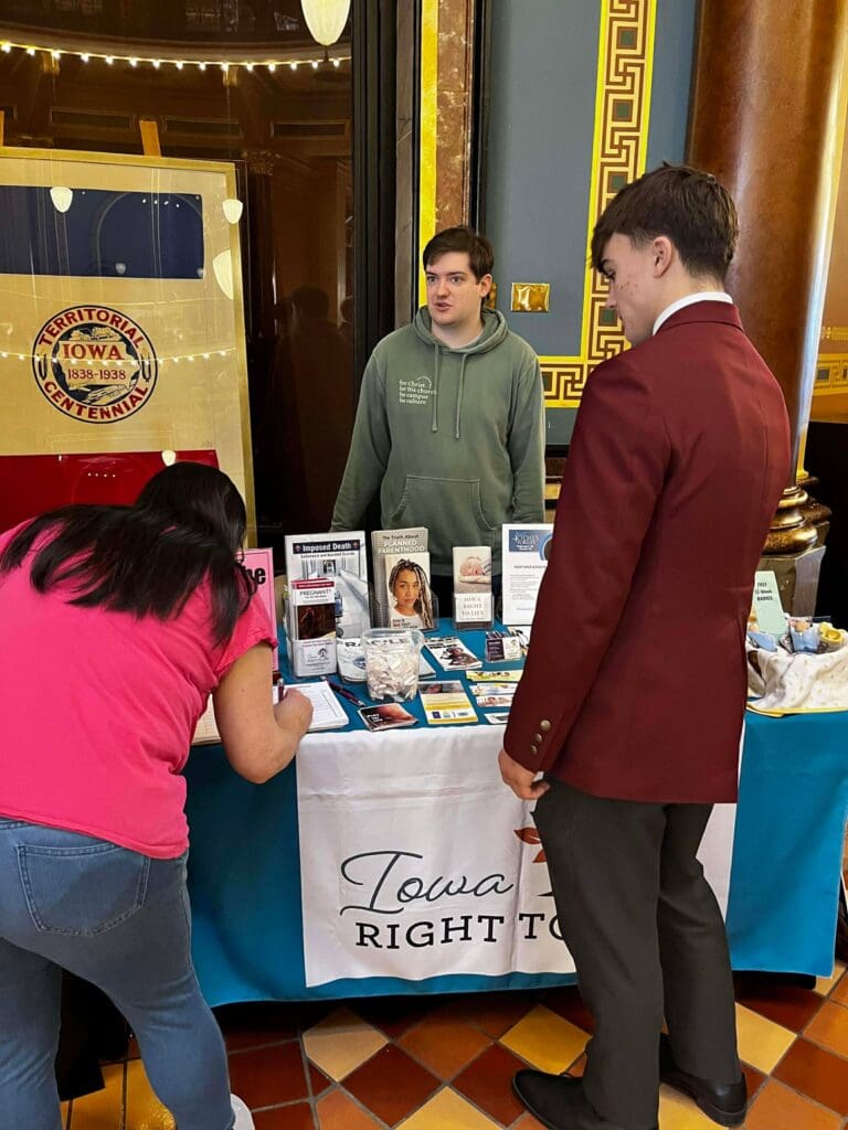 February 5, 2026: Iowa Right to Life values the opportunity to connect with pro-life Iowans, and we are encouraged each year by the great attendance at the annual Prayer Rally for Life at the Iowa State Capitol. We are always grateful to see many familiar faces and to meet new pro-life friends. The program included prayer, legislative updates, and personal testimonies. We are thankful for the importance Governor Kim Reynolds has placed on attending this event each year, and the amazing pro-life champion she has been. The most powerful testimony came from Briana, who courageously shared the trauma she experienced from the abortion pill, the deceptive ultrasound Planned Parenthood showed her to sway her decision, and the healing she later found through her relationship with Christ. Many Pregnancy Centers from around Iowa were present with their resource materials proving the pro-life community supports and cares for women and their unborn baby before, and well after, birth. For a map of pregnancy centers in Iowa and the services they provide, visit our website: www.iowapregnancysupport.com